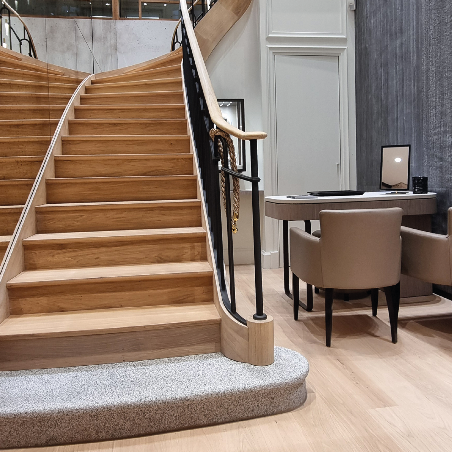 Le réaménagement de la joaillerie Prieur, située sur l'historique place du Parlement de Rennes, allie respect du patrimoine et innovation. Le projet a été pensé pour conserver l'âme du bâtiment tout en modernisant les espaces pour offrir une expérience unique à la clientèle. Les éléments architecturaux originaux, tels que les moulures et les fenêtres, ont été préservés pour garder l'authenticité du lieu. À l'intérieur, des touches contemporaines viennent sublimer les vitrines et les présentoirs, mettant en valeur les créations exceptionnelles de la maison.